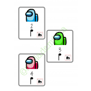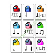 Empieza el juego: la maestra, o un alumn@ voluntario, escoge en voz alta con que compás se juega,. Entonces, cada grupo dispone de 1 minuto para localizar qué among us de su mesa cumplen el requisito de ese compás y cuales no, es decir qué cartas de la mesa suman las pulsaciones del compás con el que se está jugando y que cartas NO suman esa cantidad de pulsaciones.