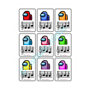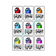 A cada grupo se le reparten 9 cartas de among us de colores, aleatoriamente.