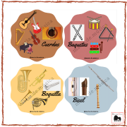 ¡Como les gusta darse cuenta que el triángulo se encuentra tanto en el grupo de metal como en el de las baquetas! O la guitarra en el de madera y cuerdas!