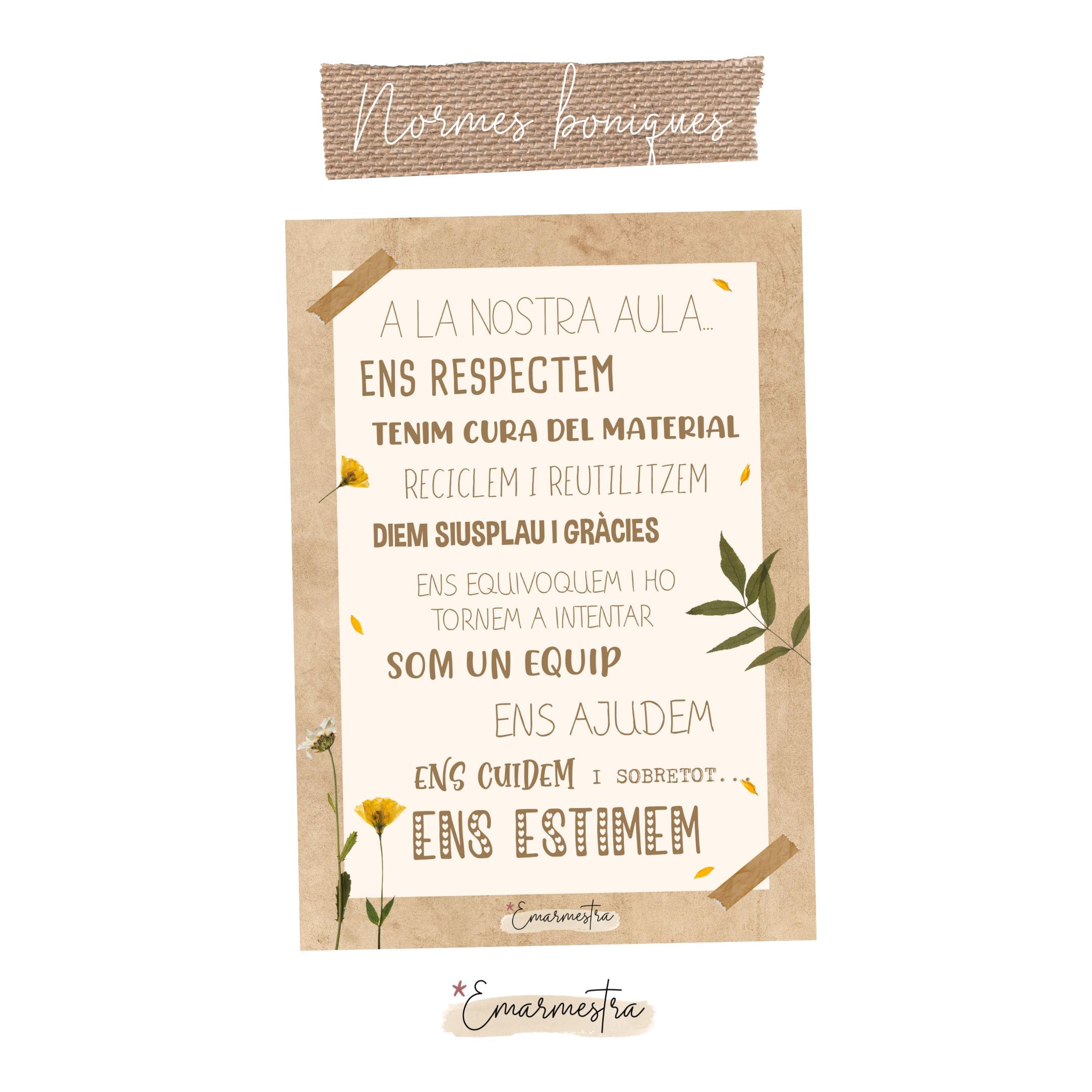 Cartell per penjar a l'aula els primers dies de curs amb les normes bàsiques fetes amb amor.
