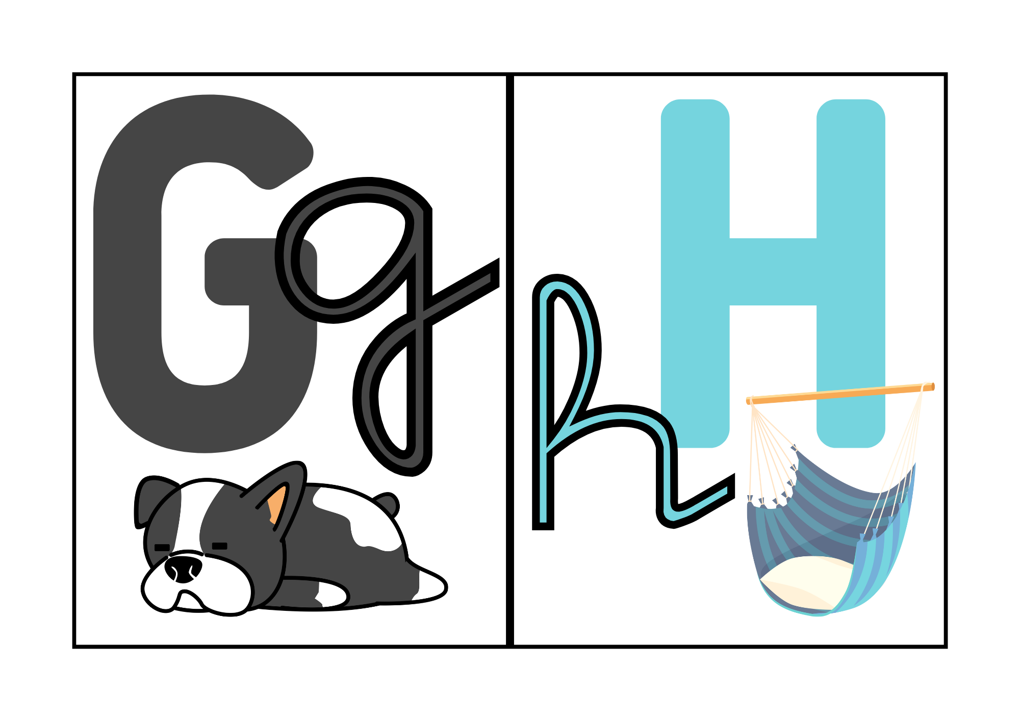 Abecedari per penjar a l'aula. Es pot ulitilitzar per treballar la lletra lligada i la lletra de pal.
