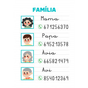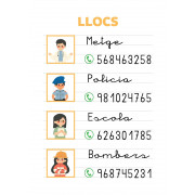Una pàgina amb dos mòbils imprimibles per a poder marcar els números i set pàgines amb diferents números de telèfon de diferents temes (família, amics i llocs). Ideal per treballar per parelles un dient els números del llistat i l'altre marcant-los al mòbil.