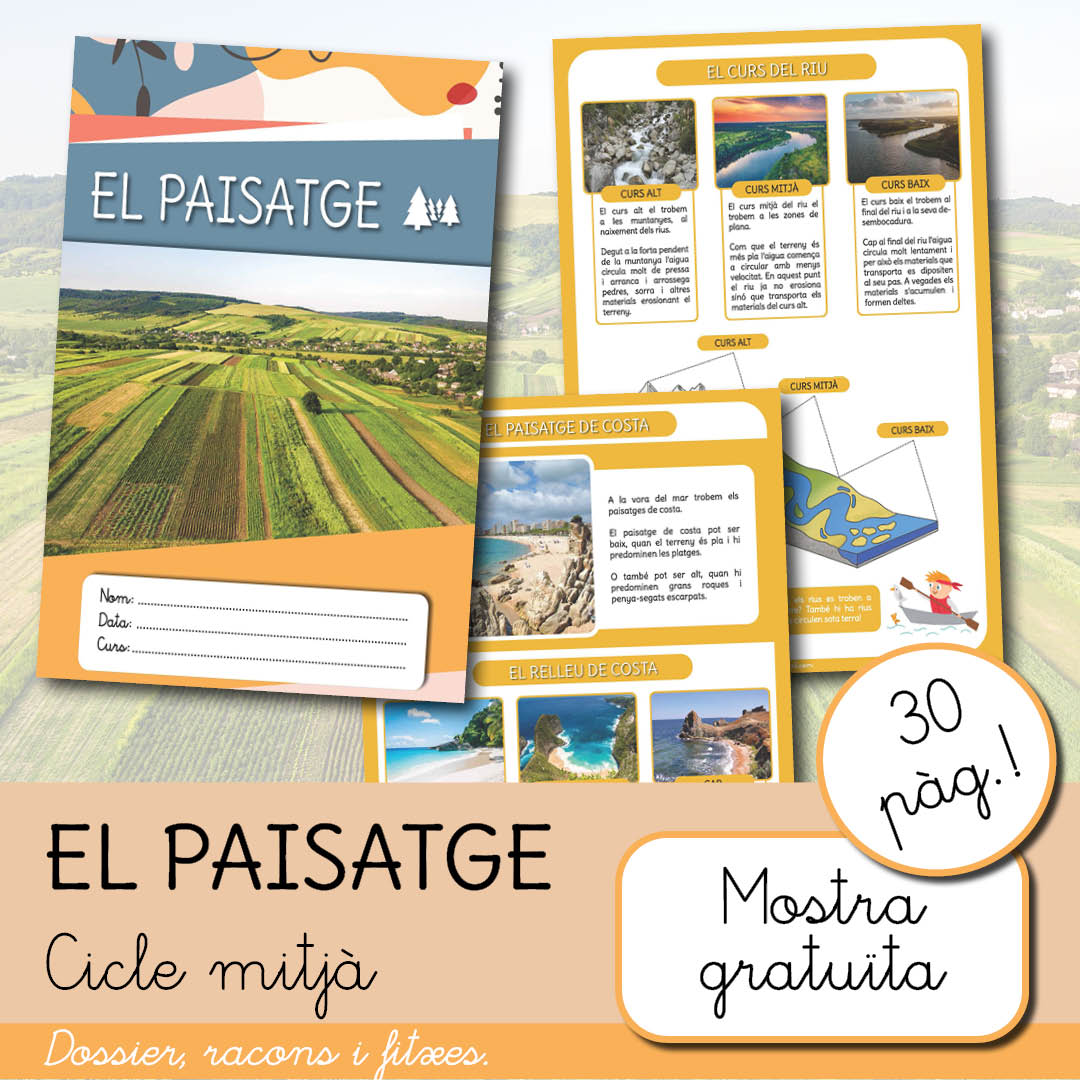 Aquest material és la continuació del material “El paisatge – Cicle Inicial”, amb un petit repàs dels conceptes del dossier anterior i l’ampliació per treballar a Cicle Mitjà.