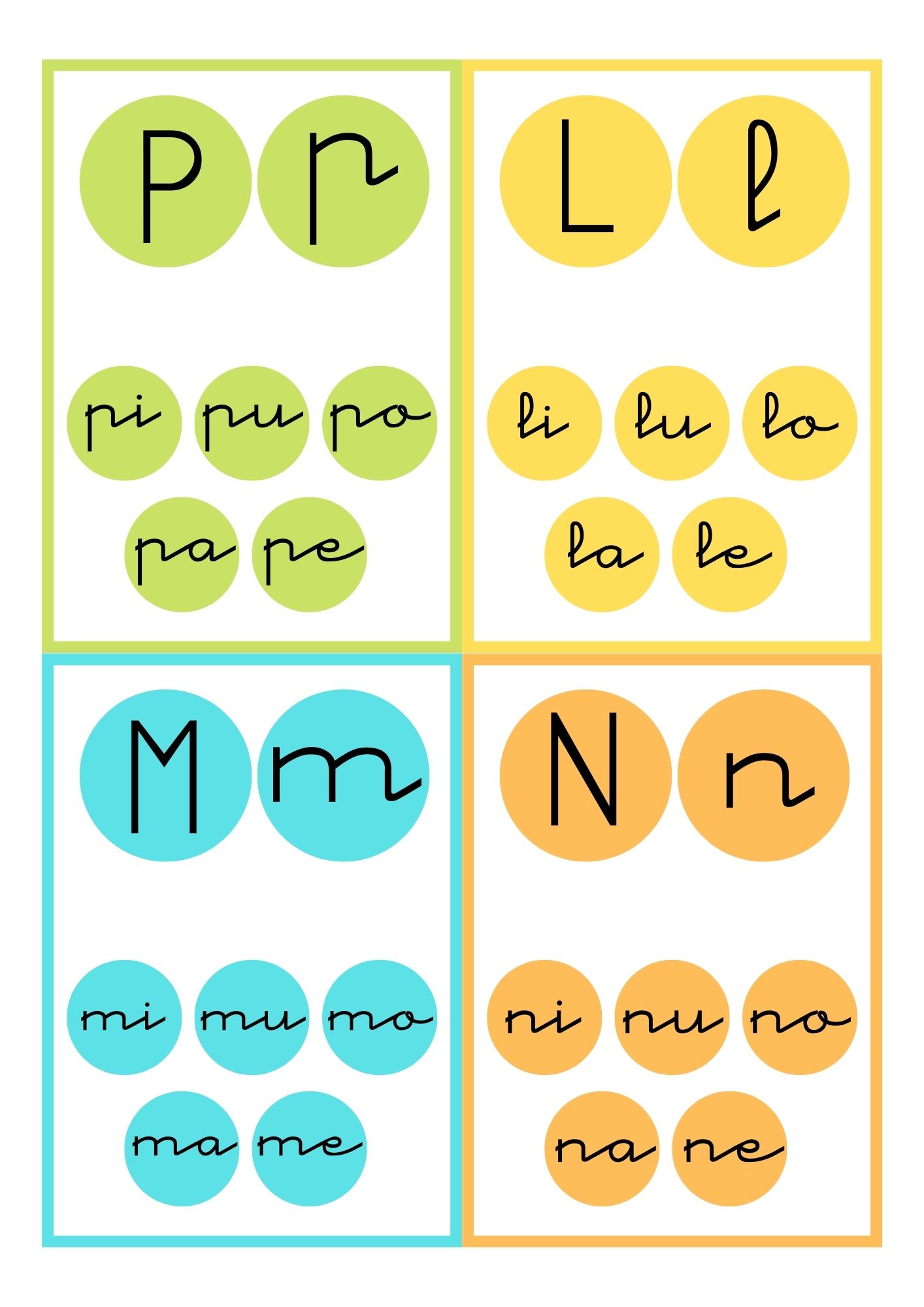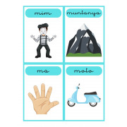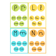 En aquest imprimible hi trobareu targetes amb els sons consonàntics (m,n,b,v,c,x,z,l,j,h,g,f,d,s,p,t,r,q) acompanyats de les vocals. I també targetes d'imatges amb la paraula escrita amb lletra lligada per cada so (8 targetes per so consonàntic aproximadament). Ho podreu fer servir com iniciació a la lectura, per treballar la lletra lligada, per treballar so consonàntic més vocal, per treballar vocabulari, per classificar segons so...