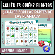 Se trata de un material para trabajar diferentes tipos de plantas y sus partes. Este material contiene el tablero de juego y una pauta de preguntas para poder guiar a nuestro alumnado. Se juega como en el clásico juego de «Quién es quién?» mediante preguntas a las que se responda sí o no. A medida que vas jugando vas eliminando hasta conseguir encontrar al objetivo.