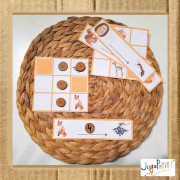 El zorro, el erizo, el cervatón y la ardilla quieren llegar a su comida. Podemos jugar poniendo piedrecitas y contando cuántas casillas deben avanzar o si ya son mayores podemos jugar con flechas y la dirección.