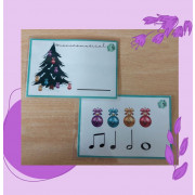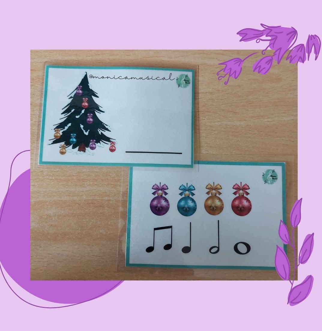 Con las tarjetas de las bolas de colores en el árbol, sumaremos los tiempos según nos marca la tarjeta de las figuras musicales. Depende de la dificultad, separaremos los tiempos por bolas de colores o sumaremos todas las bolas juntas.