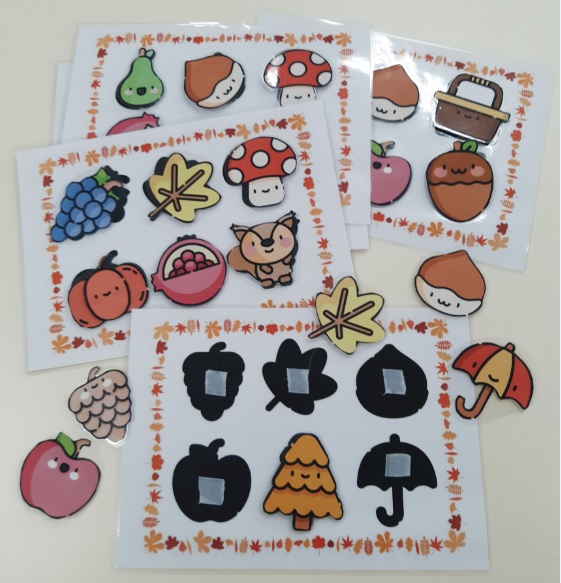 Juego para asociar cada sombra con su dibujo pack de 12: 6 de otoño y 6 de navidad
