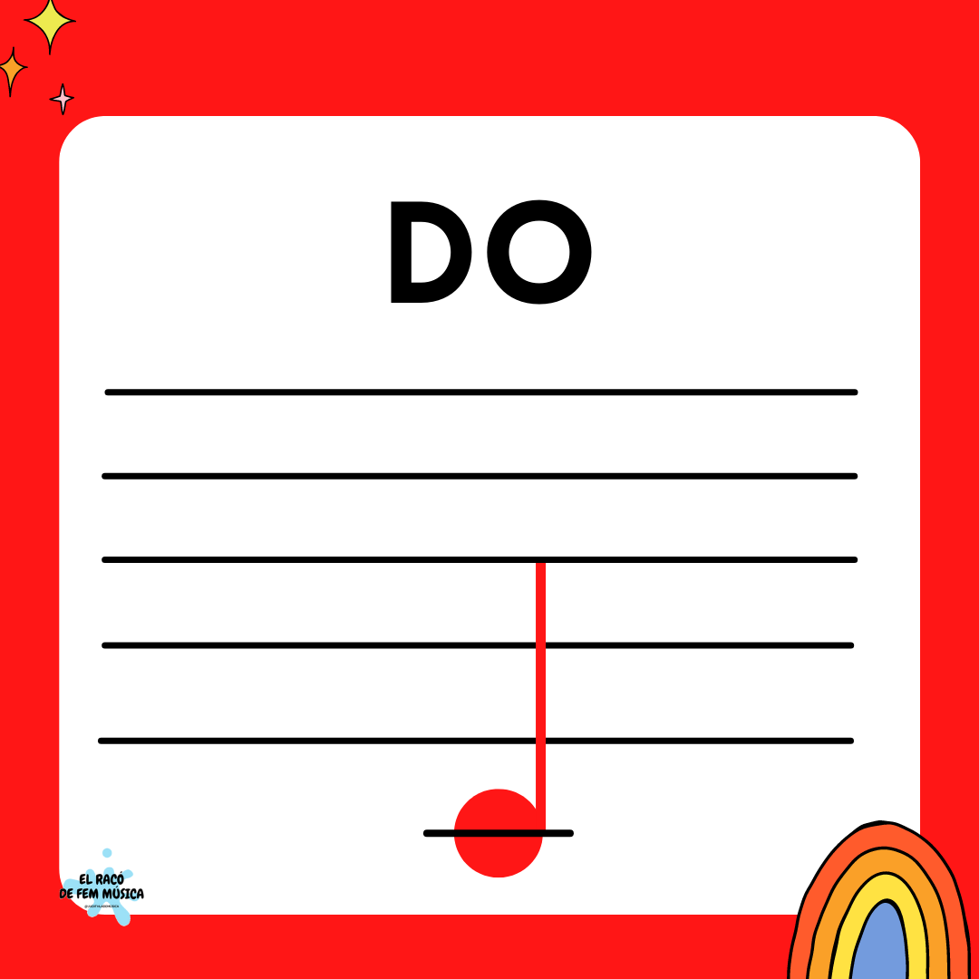 8 carteles con los nombres de las notas y su posición en el pentagrama.