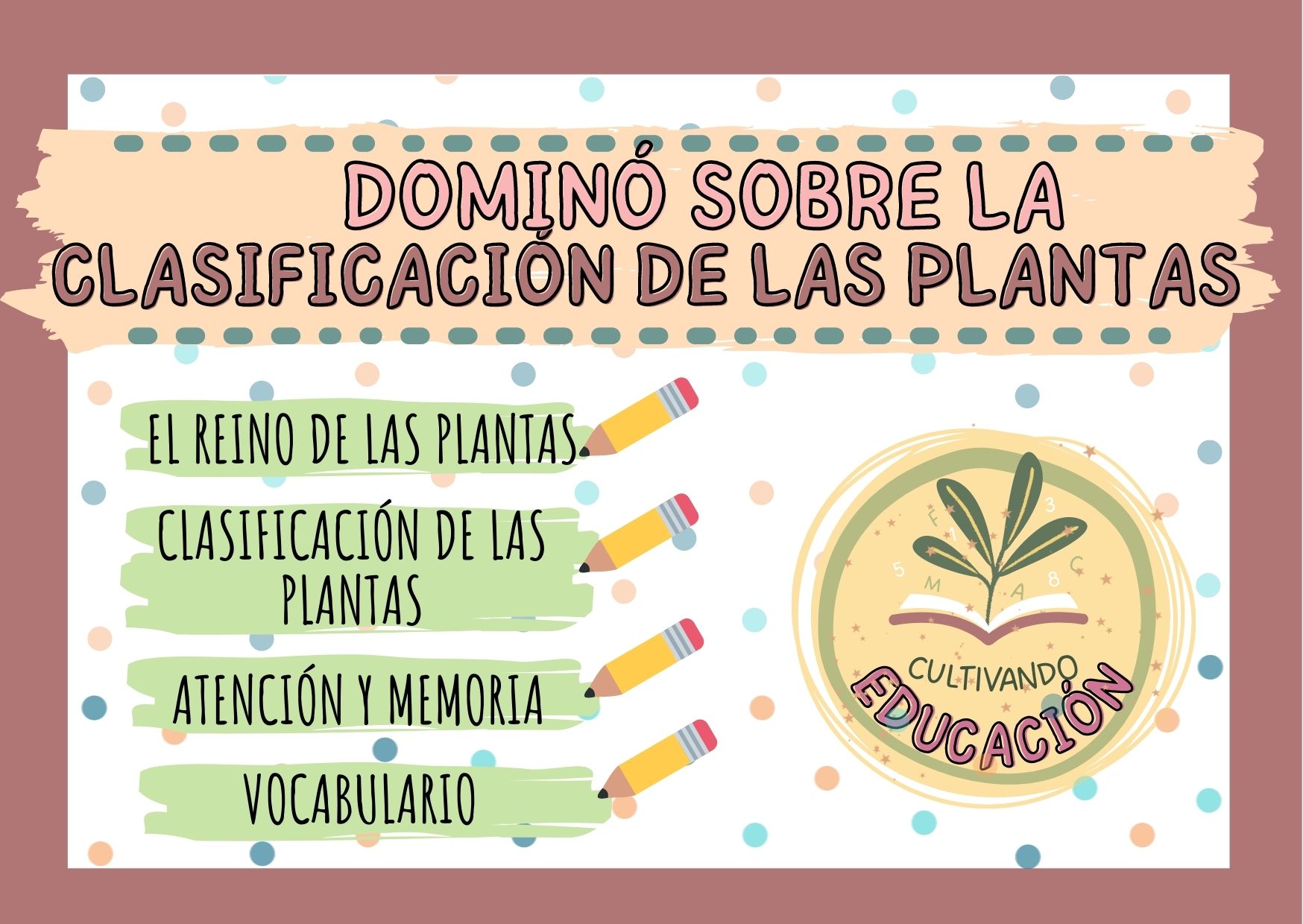 Con este dominó imprimible podrás trabajar el reino de las plantas de una forma muy divertida. Los niños aprenderán a clasificar estos seres vivos diferenciando entre: