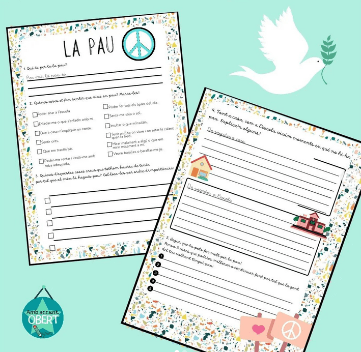Aquest material, t'ajudarà a parlar de la pau i sobretot a convidar a l'alumnat a reflexionar què és per ells, la pau.