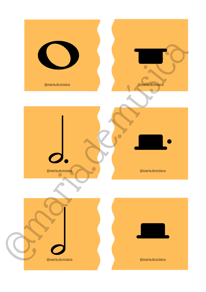 Con este divertido puzle debemos unir ritmos musicales por parejas, trabajando así la relació ritmo-pausa (juego naranja) y a su vez varias equivalencias rítmicas (juego azulado), des de la semicorchea hasta la cuadrada! ¿Te atreves?