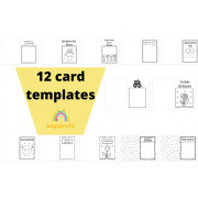 El documento contiene 12 plantillas de tarjetas para que los niños elijan. Las tarjetas quedarán mejor si se imprimen en papel grueso o cartulina, de modo que se mantengan en pie cuando se doblen por la mitad.