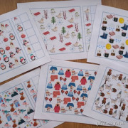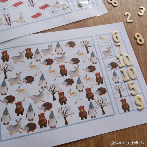 6 làmines mida A4 per a treballar el compteig. Imatges vocabulari hivern.