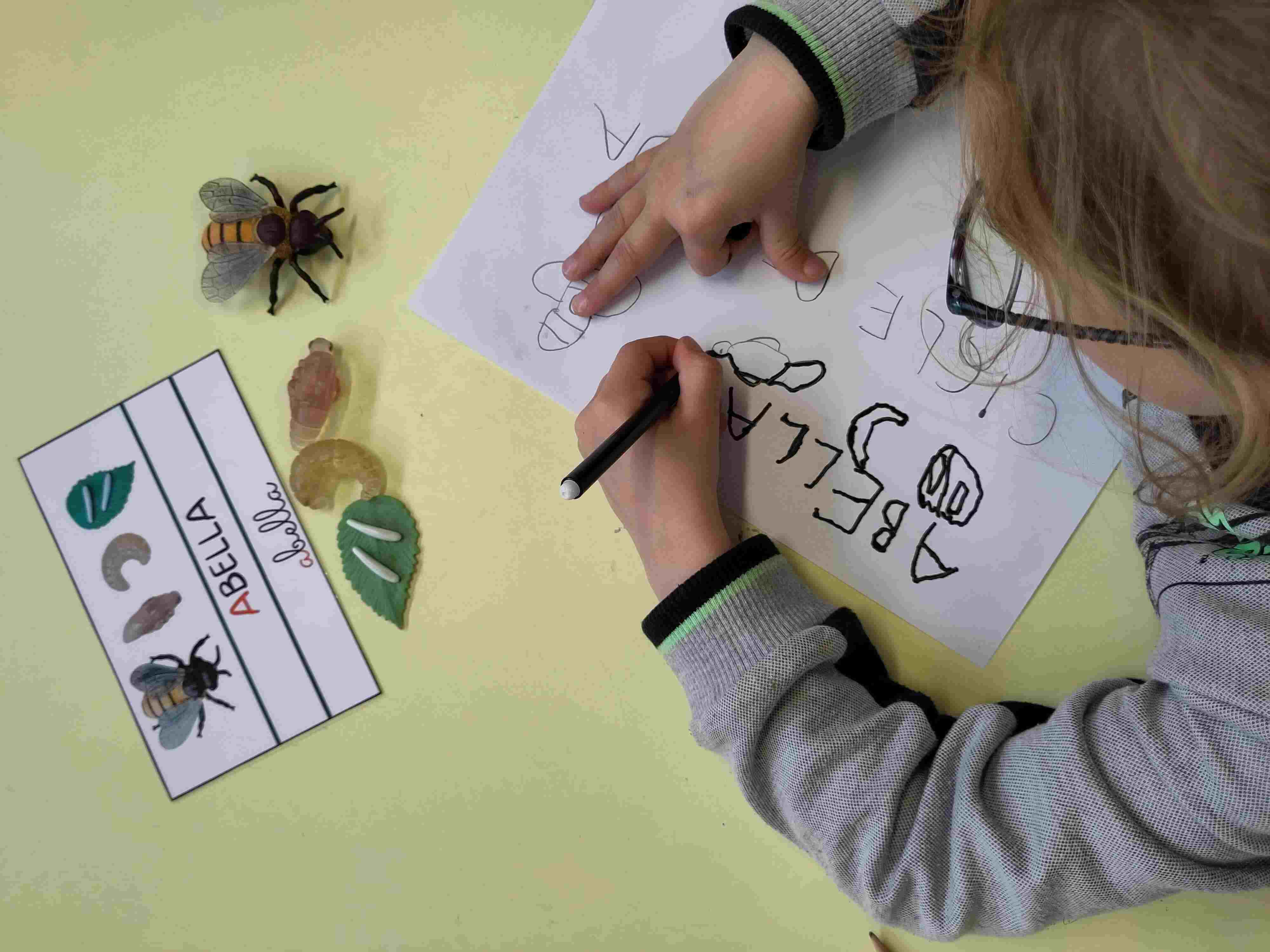 Les targetes grans s'utilitzen amb el material manipulatiu perquè es puguin autocorregir. Després utilitzen les més petites per desxifrar com s'escriuen i buscar la seva parella.