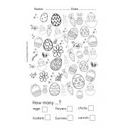 El vocabulario que contiene: bunnies, carrots, baskets, chicks, eggs, flowers.