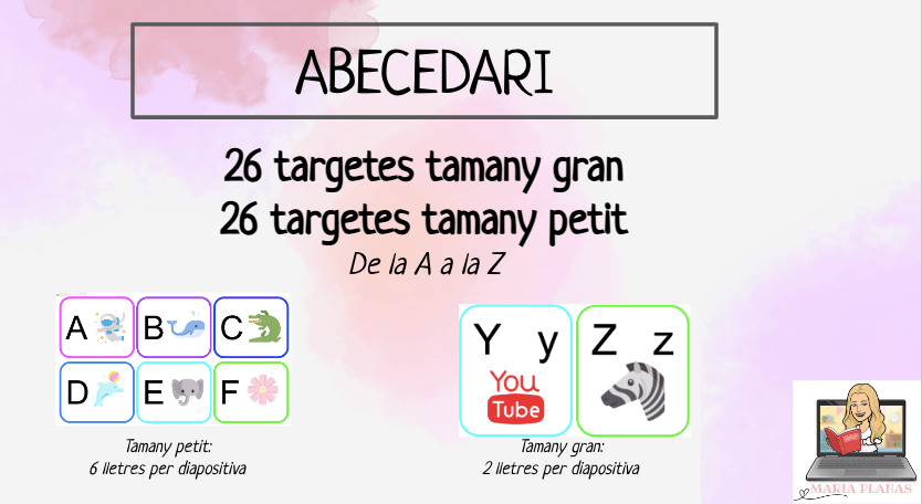 Format per 26 targetes amb tamany gran i 26 targetes amb tamany petit.