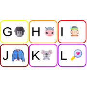 Cada targeta conté la lletra amb un imatge que serveix de referent visual per l'identificació de la lletra amb la paraula que comença per aquella lletra. A "astronauta", B "balena",...