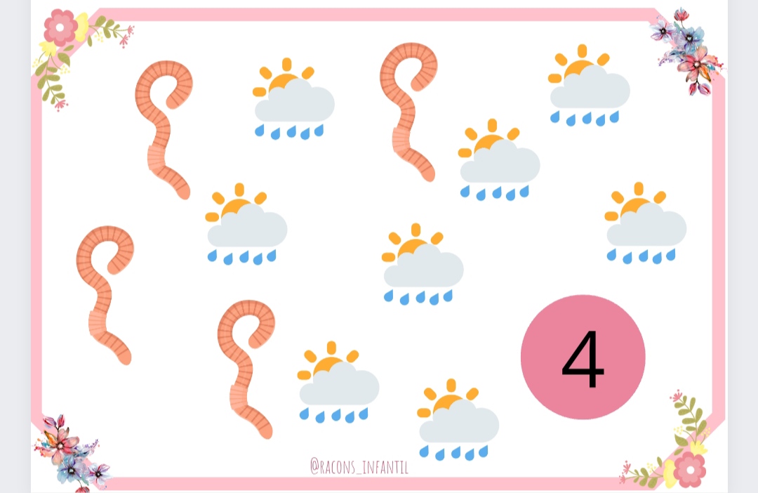 Recurs de matemàtiques per a racons de primavera en el qual han de fer agrupacions segons el nombre que hi ha a la fitxa.