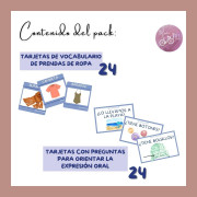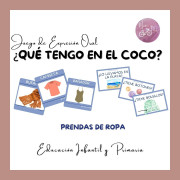 Se trata de un recurso para jugar al juego "Que tengo en el coco" con el vocabulario de la ropa.