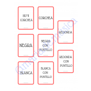 -Agrupación de la misma figura rítmica (Ej: blanca-blanca-blanca). Máximo puede haber una ficha de cada color. Se pueden combinar fichas de figuras rítmicas con fichas de nombres de ritmos, si se juega con ambas opciones simultáneamente.