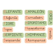 14 Tarjetas con imágenes de animales de la selva y su nombre escrito en mayúsculas y en letra ligada. Se incorpora una actividad para relacionar cada animal con su nombre. Las tarjetas pueden usarse para diferentes actividades dependiendo de la edad.