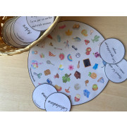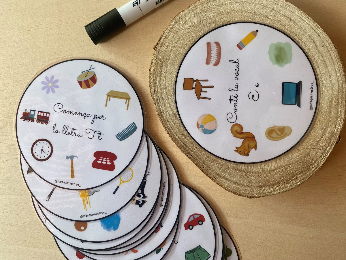 Aquesta activitat té com a objectiu treballar tots els fonemes de l'abecedari. Un total de 24 targetes amb paraules que contenen la lletra (no totes).