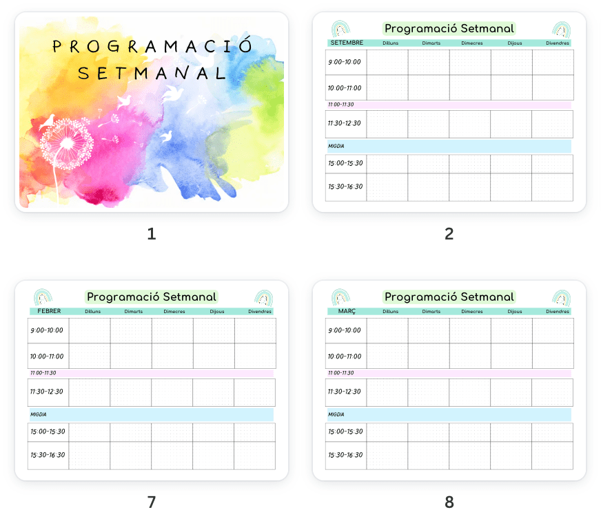 Amb aquesta programació no t'oblidaràs de res! Imprimeix-la com vulguis i crea la teva llibreta de programació setmanal al teu gust.