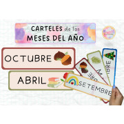 Cada cartel viene con el nombre del mes y un dibujo con algo que caracteriza el mes (por ejemplo, en diciembre un árbol de Navidad).