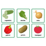 · Il·lustracions atractives: Cada targeta mostra una il·lustració acolorida i captivadora de la verdura corresponent, amb el nom escrit a sota per facilitar la identificació.