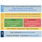Seqüència didàctica que inclou tècniques i textos per dur a terme un debat a l'aula sobre les pantalles. Conté exemples d'arguments per donar suport a dues posicions:
