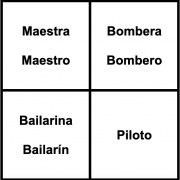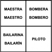 - 24 tarjetas con la palabra escrita (masculino y femenino).
