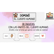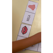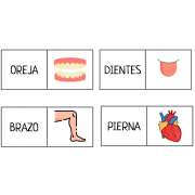 Dominó para trabajar "Las partes del cuerpo humano" y trabajar la lectura relacionando la imagen con la palabra escrita en letra mayúscula.