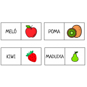 Dominó per treballar i aprendre les fruites en llengua catalana.