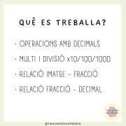 Inclou taulell i 20 targetes de cada categoria: quina fracció és?, equivalència fracció-decimal, operacions amb decimals i càlcul x/÷ 10,100...