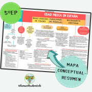 Aquí os traigo un mega recurso que os va a resolver el temario de Historia para 5ºEP. Se trata de un mapa conceptual (o resumen, como lo quieras llamar) donde se sintetiza con detalle cada uno de los temas más esenciales de la época de manera cronológica.
