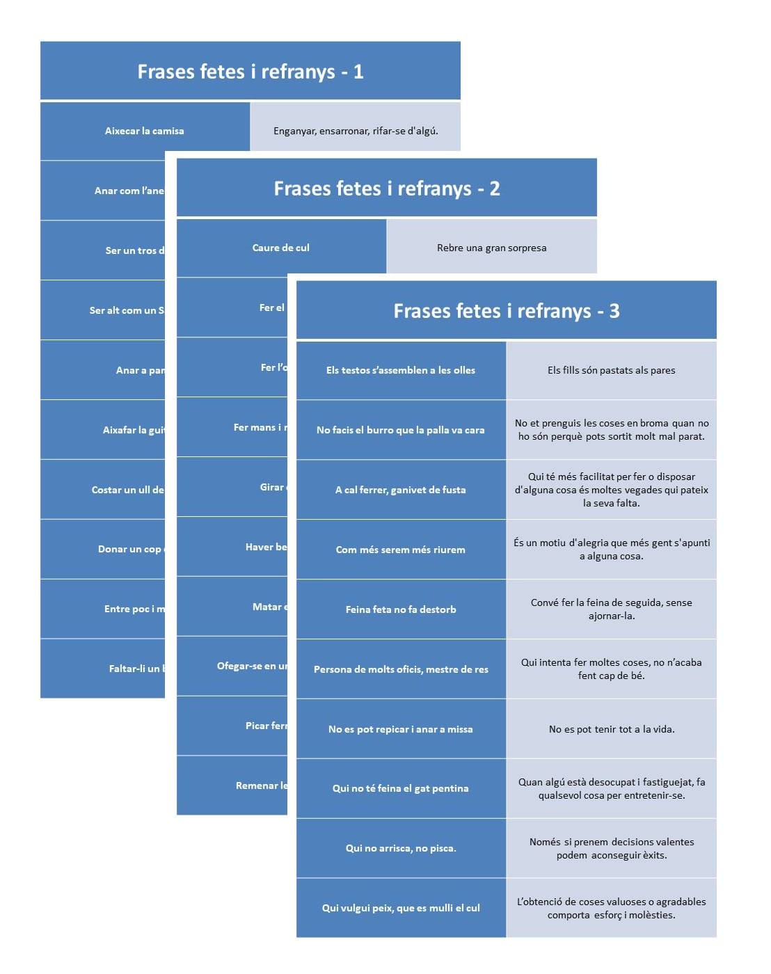 3 Nivells de Dificultat: Les frases fetes i refranys es presenten en tres nivells de dificultat, permetent als nens i nenes de diferents edats i habilitats gaudir del material. Des dels més joves fins als més grans, hi ha una opció per a tothom.