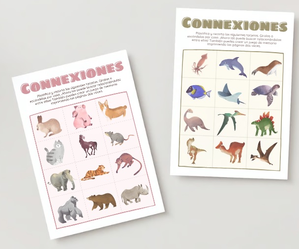Juego de Memoria: Si se realizan dos copias de cada lámina, puede jugarse a un emocionante juego de memoria. Los niños y niñas tendrán que hacer parejas de animales coincidentes. Este juego mejora la memoria y la concentración.