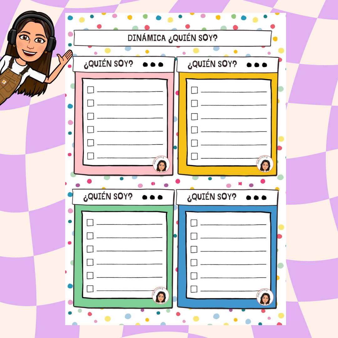 Se trata de una dinámica para conocerse un poco más los primeros días de clase. Se repartirá una tarjeta por alumno y alumna en la que deberán escribir seis pistas sobre ellos y ellas.