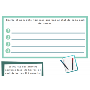 La proposta didàctica consta de 4 activitats variades per practicar l'escriptura de nombres, ordenar-los de més gran a més petit i les operacions senzilles de dues xifres, el punt de partida de les quals és la recerca i dibuix de 4 objectes amb codis de barres.