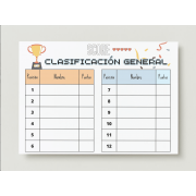 El pack contiene: 14 tarjetas + plantillas de puntuación + plantillas de clasificación