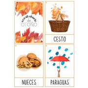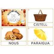Bits per treballar el vocabulari de la tardor amb imatges reals. Es presenten en format targeta (4 per pàgina) per imprimir-los en DIN A4, amb l'opció d'imprimir per darrere la paraula per tal de llegir-la mentre es mostra la part del davant als infants.