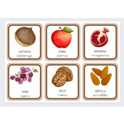 Targetes amb vocabulari de la tardor, 47 diferents, escrit el nom amb lletra majúscula i minúscula (lligada).