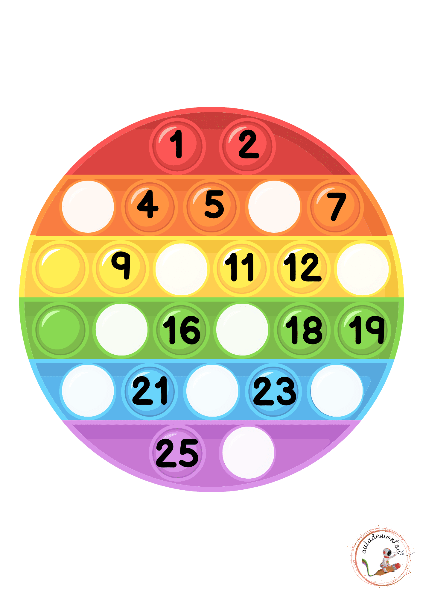 A través dels pop it proposats es pretén que l'alumnat pugui omplir els espais en blanc. Així sabent quin ordre segueixen els números. Al final del document trobareu un exemple omplert per poder adaptar-lo segons les vostres necessitats.