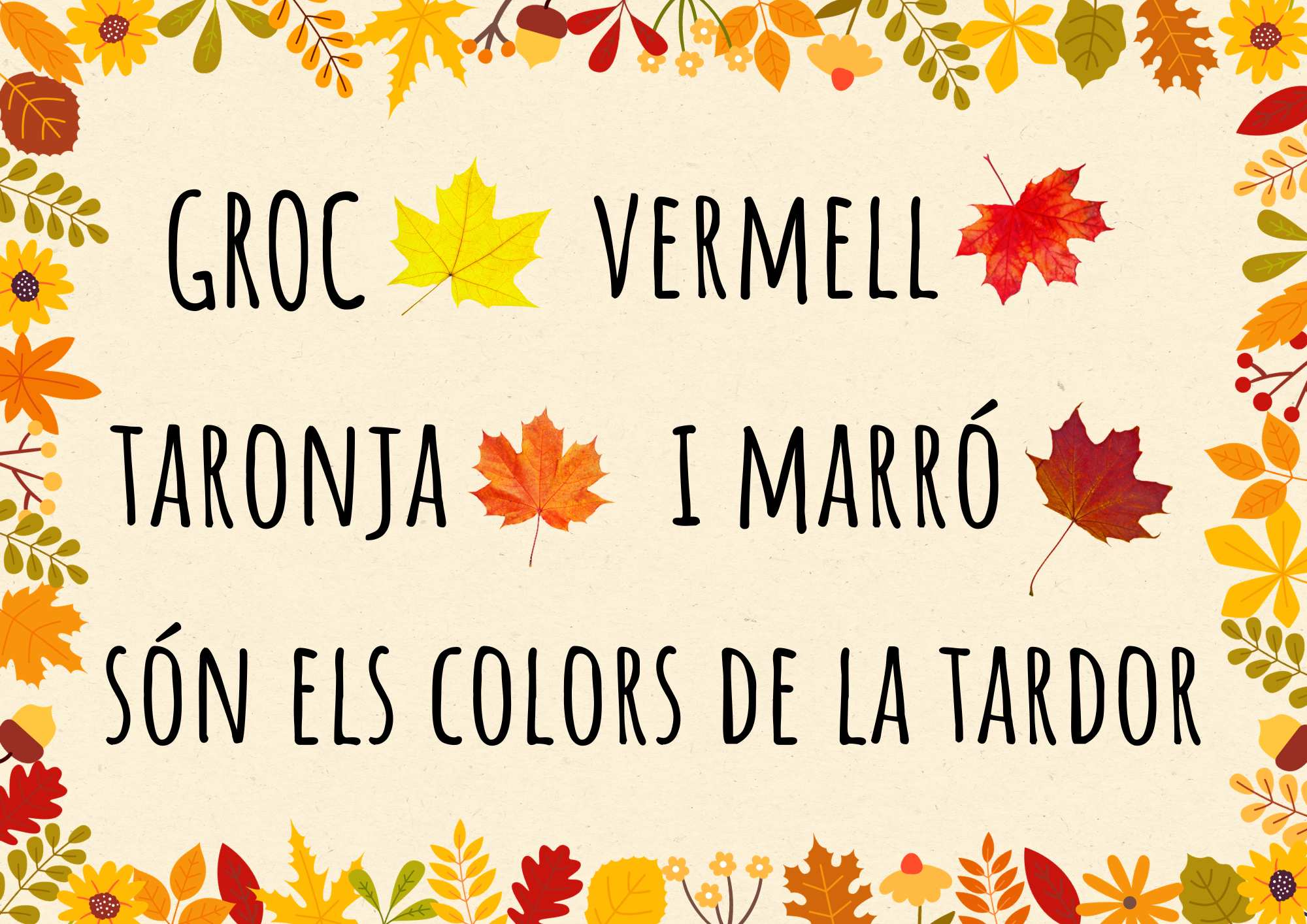 Dita de la tardor per penjar a l'aula o mostrar als infants.
