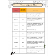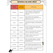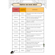 Listado con adjetivos, sustantivos y verbos relacionados con Halloween.