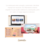 En aquesta ocasió, la castanyera està cansada i vol anar de vacances. Pel camí, haurà de resoldre diferents reptes: trencaclosques, sopes de lletres, endevinalles, reptes matemàtics, etc. Finalment, s'enyorarà i voldrà tornar a casa, però no li serà tan senzill com pensa. Arribareu a temps a celebrar la castanyada?