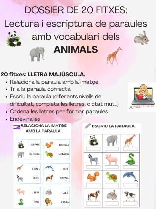 Dossier 6 racons / estacions d’aprenentatge / activitats lectoescriptura els animals: https://www.profespapeltijera.com/es/product/6992