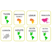 - 48 cartas con diferentes animales y su nombre para que los niños y niñas relacionen las diferentes imágenes con su nombre correspondiente.