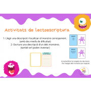 Els infants tenen unes targetes que han de llegir i han de trobar quin monstre està descrit. Hi ha dos nivells de lectura: el nivell fàcil on només hi apareixen paraules i el nivell difícil on hi ha petites frases.